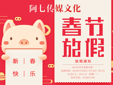 尊敬的客户: 您好! 我们又携手走过一年,感谢您的鼎力支持,值此新春佳节即将来临之际,深圳市汉驿网络科技有限公司全体同仁恭祝您新春愉快,阖家欢乐,猪事顺利,财源广进! 我司春节...